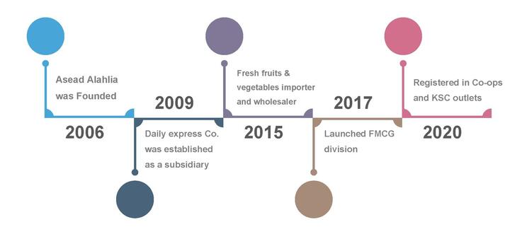 في عام 2008، تأسست شركة ديلي إكسبريس كجزء من شركة أسياد الأهلية المرخص لها كشركة كويتية للبريد السريع للقيام بأعمال الشحن والبريد السريع وفي الوقت الحالي، تقوم شركة أسياد الأهلية بتوسيع عملياتها من خلال الدخول إلى سوق المواد الغذائية لتحقيق الخطة الاستراتيجية لمؤسستنا كشركة متنوعة